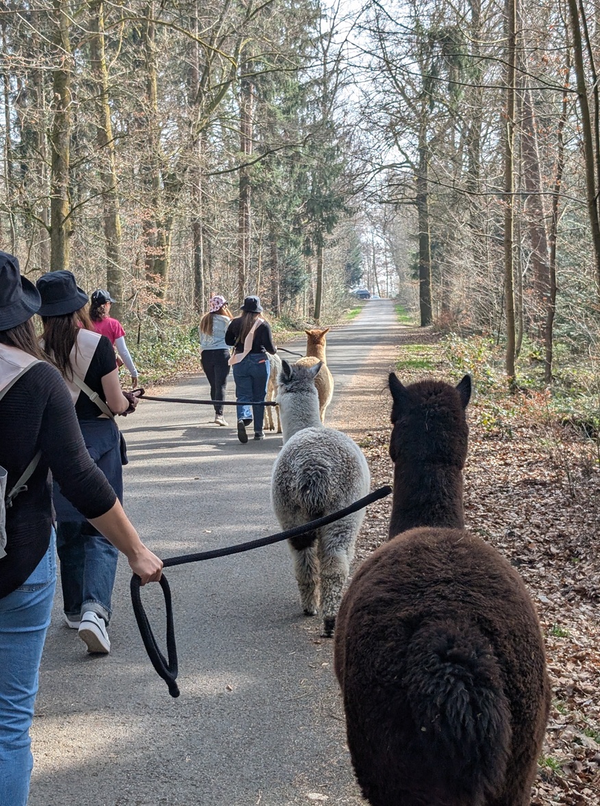 Ein Alpaka Spaziergang ist ein ganz besonderes Erlebnis. Wir begleiten unsere Spaziergänge und teilen Wissenswertes über diese wunderschönen Tiere. Dauer: 1.5-2 Stunden